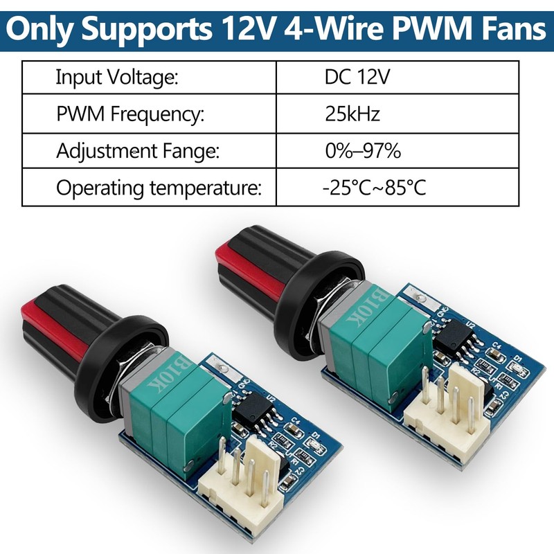 PWM Frequency: 25kHz (Compatible with most 12V PWM fans)