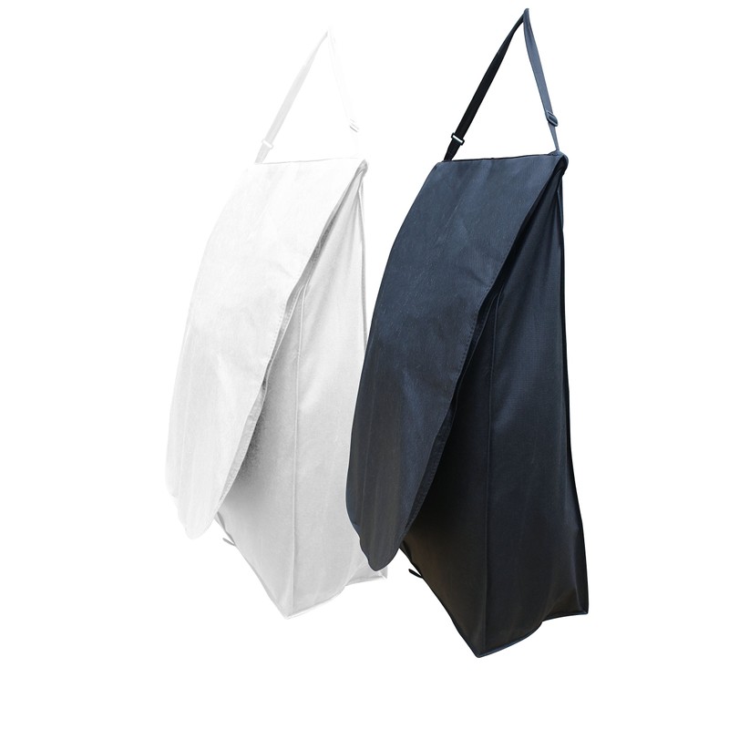 - 80gsm Non-Woven breathable material with full length zip. Wooden bar + adjustable shoulder strap allows easy folding and transportation.