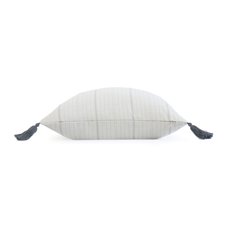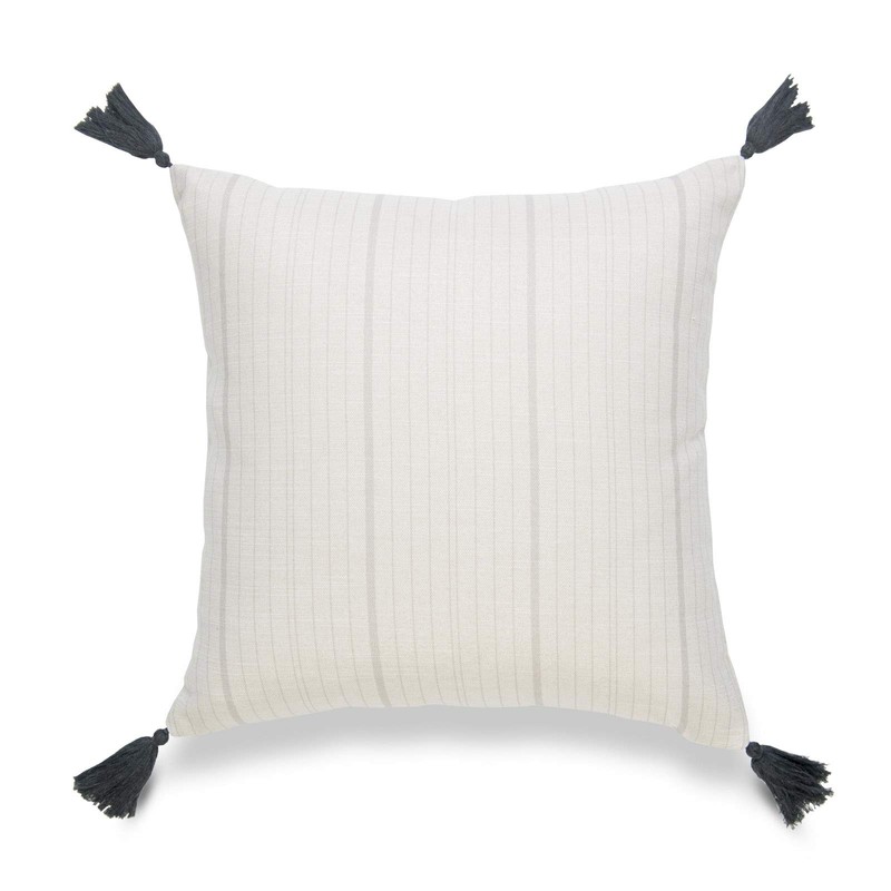 Hofdeco Neutral Decorative Throw Pillow Cover ONLY, for Couch, Sofa, or Bed, Gray Stripe Tassel, 18"x18"