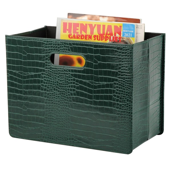 HofferRuffer Magazine Basket Holder, Foldable Magazine Rack, Document File Holder Organizer, File Folder, Newspaper Storage Bin Organizer for Home or Office (Green)