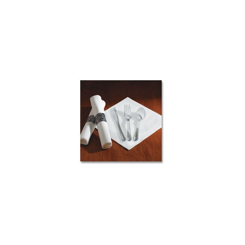 Hoffmaster 119973 Linen-Like CaterWrap Pre-rolled Dinner Napkin and Heavyweight Cutlery, Damask, White/Clear (Case of 100)