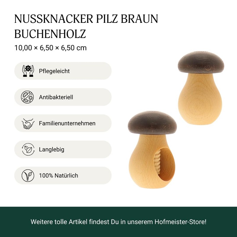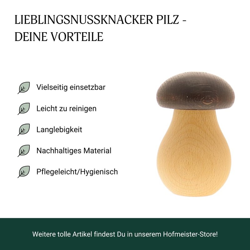HOFMEISTER® Mushroom Nutcracker Made of Beech Wood, Handmade in Europe, Cracks Each Nut with Little Strength, Ideal for Children, Nut Shells Stay in the Cracker