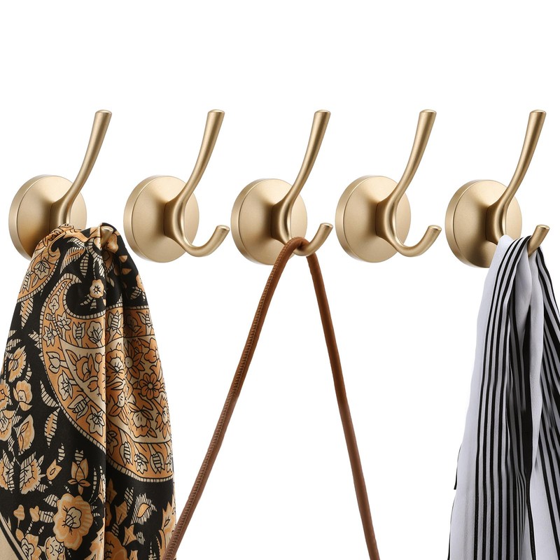 5 PCS gold wall hooks, a large quantity, Add one or two of these hooks to your entryway for coats and hats, your bathroom for towels or robes, or even your kitchen for pot holders, aprons and dishtowels. Provides an abundance of space for your home..