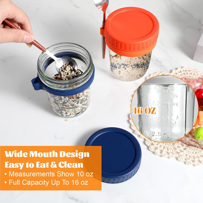 - 【LEAK-PROOF & VERSATILE FOR ON-THE-GO】- Featuring tight-fitting silicone seals ring, our containers prevent leaks and keep your food fresh longer. Perfect for busy professionals, students, and travelers, these leak-proof oats jars make it easy to carry your overnight oats to work, school, or anywhere else without worrying about spills or messes.