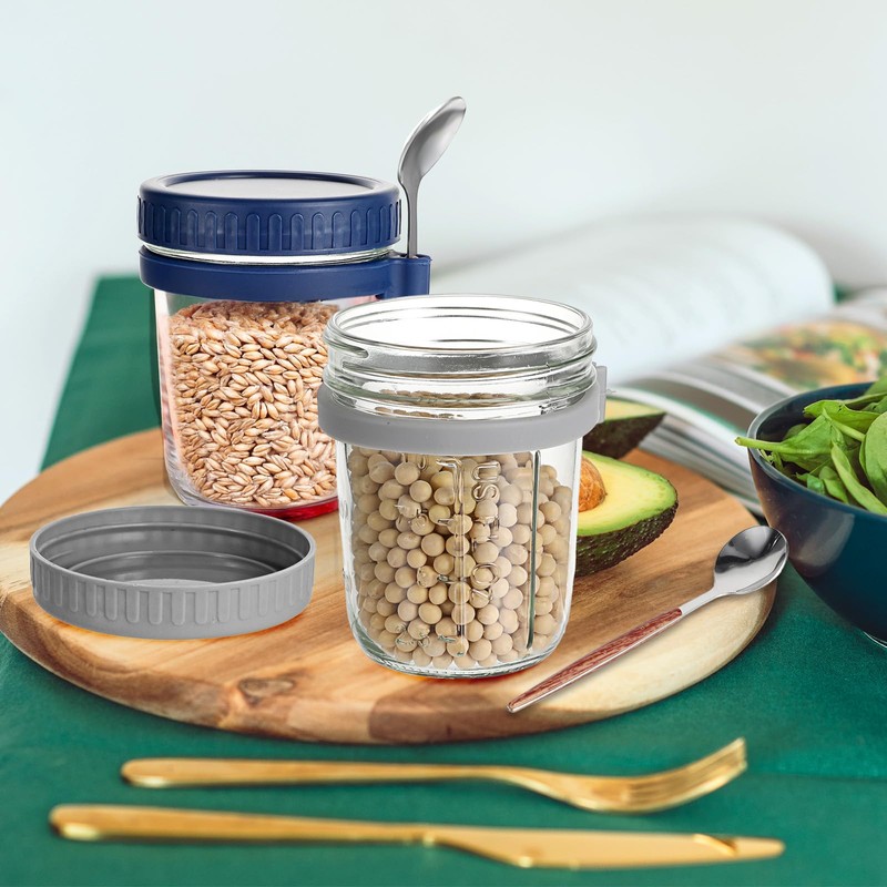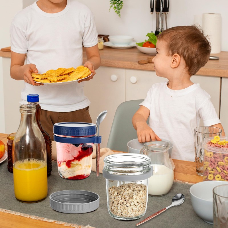 - 【USER-FRIENDLY DESIGN】- The wide-mouth design ensures effortless filling, eating, and cleaning, while our innovative spoon holder keeps spoons secure storage and easily accessible. Save time and enjoy the things you love with these efficient, stylish jars. This thoughtful gift is perfect for anyone looking to improve their diet or incorporate a nutritious, convenient breakfast into their daily routine.
