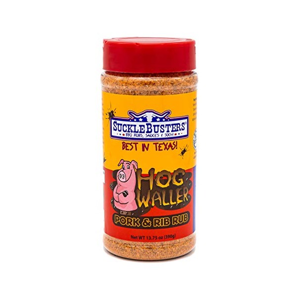 SuckleBusters Hog Waller: Texas Best Pork BBQ Rub, Sweet & Salty Seasoning for Pork Ribs, Butt, Chops, Gluten-Free, No MSG Shaker (13.75oz)