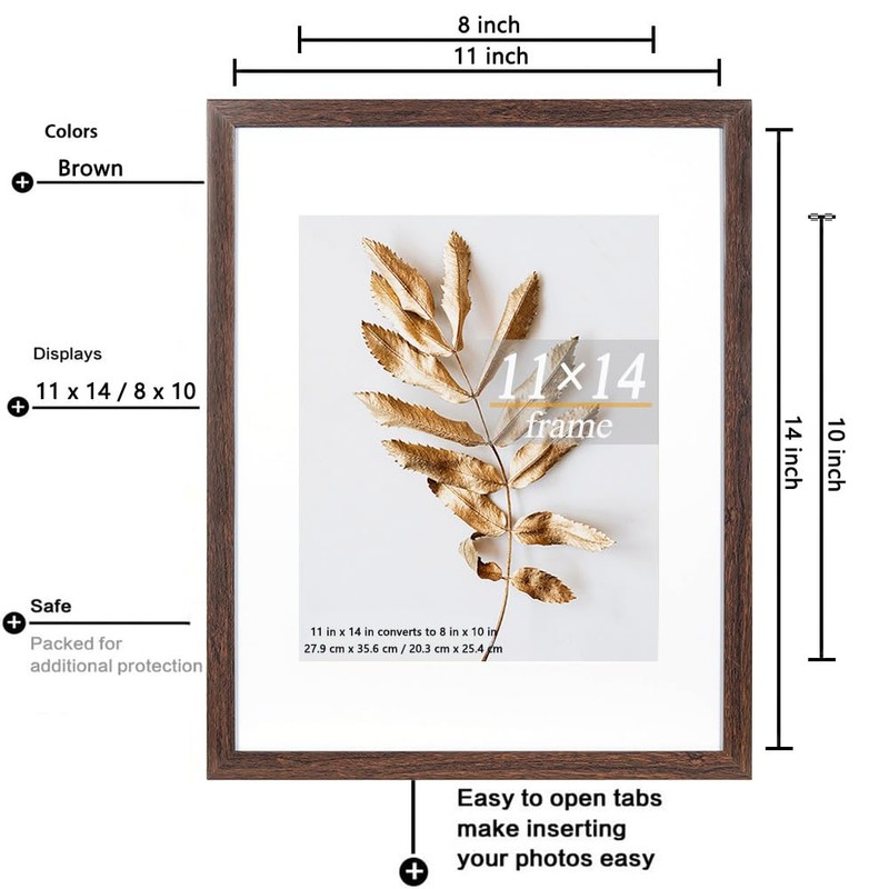 - Detachable Mat for 8x10 Pictures: These frames come with a detachable mat that allows you to display pictures in two different sizes. Use the mat to fit 8x10 photos or remove it to accommodate 11x14 pictures, providing you with flexibility and versatility.