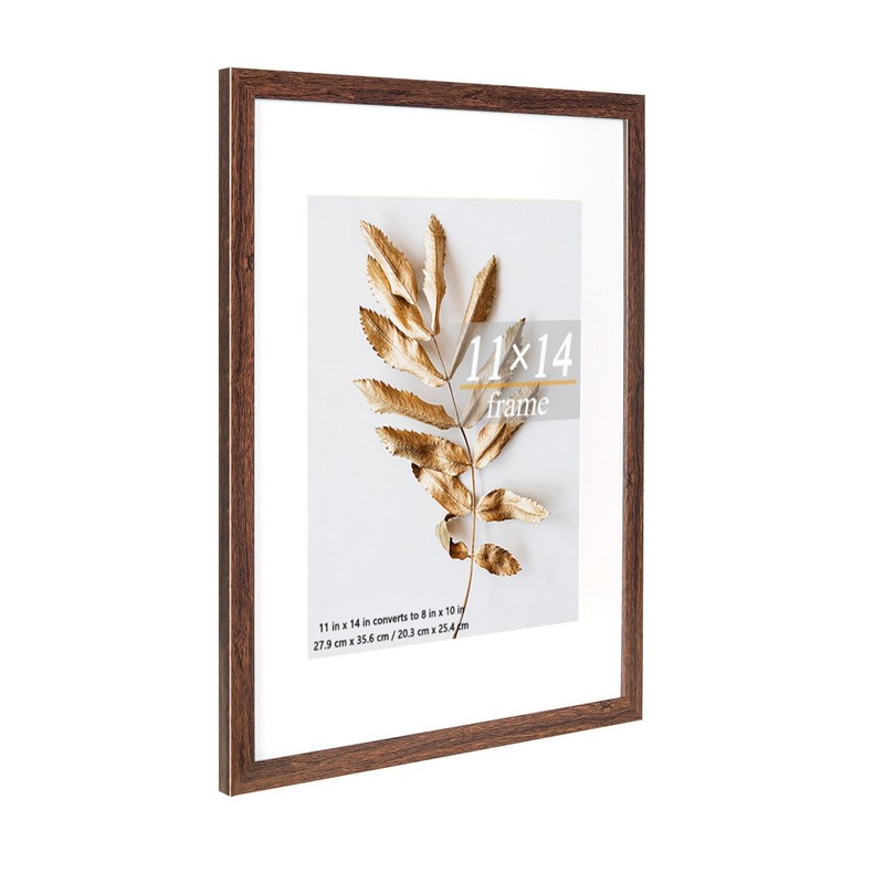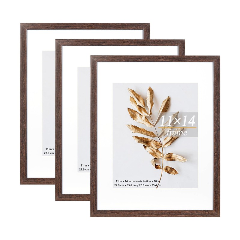 Hogaryo 11x14 Picture Frame Brown 3 Pcs in 1 set 11x14 Frames can Display 8x10 Picture with Mat or 11x14 Without Mat on the Wall