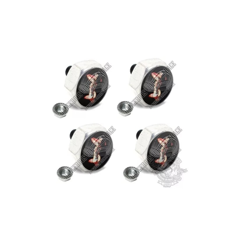 Hogking Speed Shop 4 Polished Billet Hex Lic Fastener License Plate Frame Tag Bolts TATTOO GIRL D3