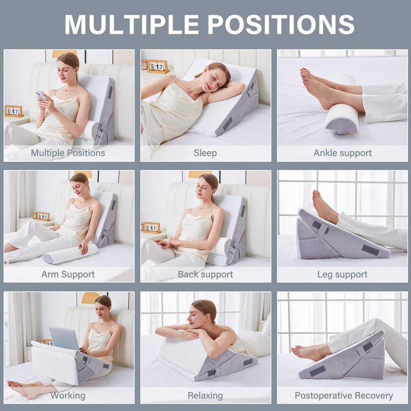 - VERSATILE USAGE: Discover multifunctional comfort with our wedge pillow. Whether you're sleeping, reading, or using devices like smartphones or computers while in bed, this pillow adapts to your every need. Our listing page showcases various usage scenarios, allowing you to freely customize the configuration to suit your lifestyle. Elevate your relaxation and support with a wedge pillow designed for versatility and adaptability, making it an essential addition to your home.