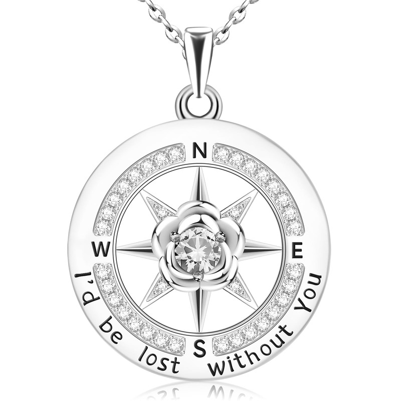 HOH-Tech Compass Necklace for Women 925 Sterling Silver Id be Lost without You Compass Necklace Birthstone Graduation Rose Compass Jewelry Compass Pendant for Mothers Wife Daughter-Apri-Zircon