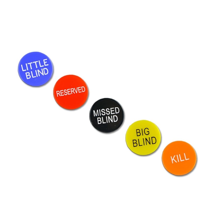 Missed blind button With vivid colors and regulation size, they are great for Poker night and tournaments.poker dealer button This package includes 5pcs poker chip; BLING Button, one LITTLE BLIND Button, one MISSED BLIND Button, one KILL Button and one Preserved Button