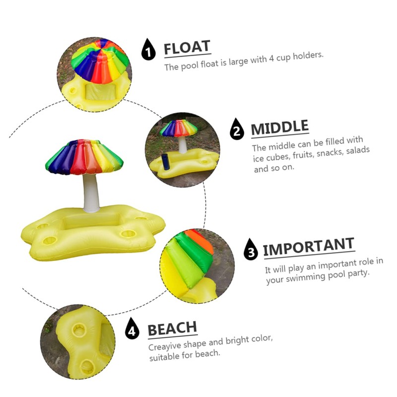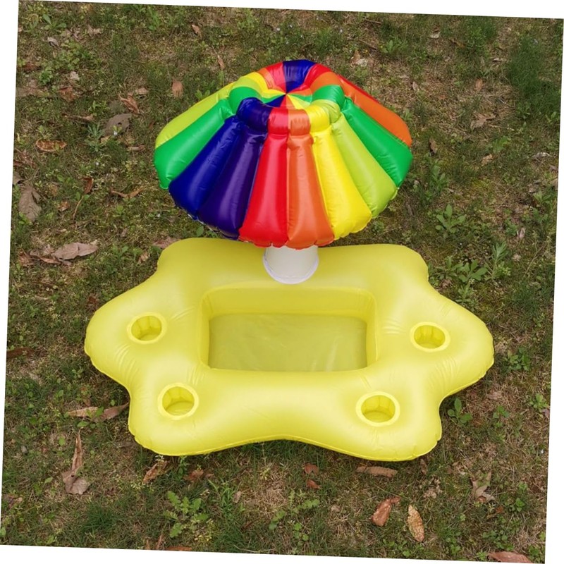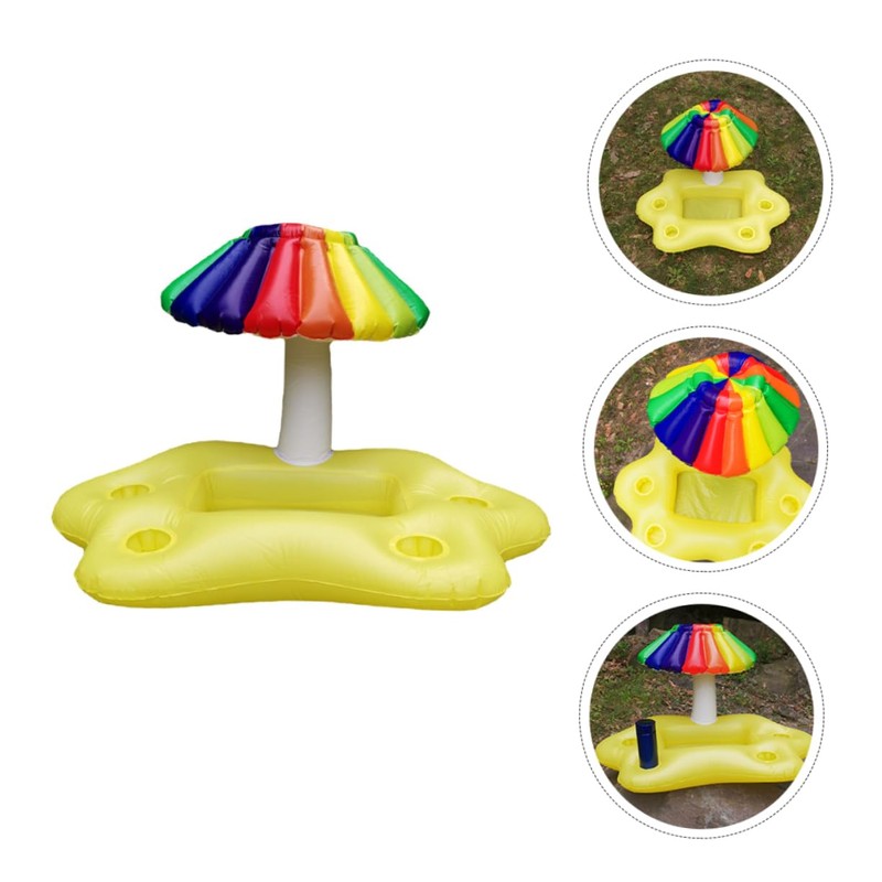 - Inflatable pool drink holder--this floating tray is decorated with a rainbow umbrella, which is decorative and fashion,inflatable drink holder for pool