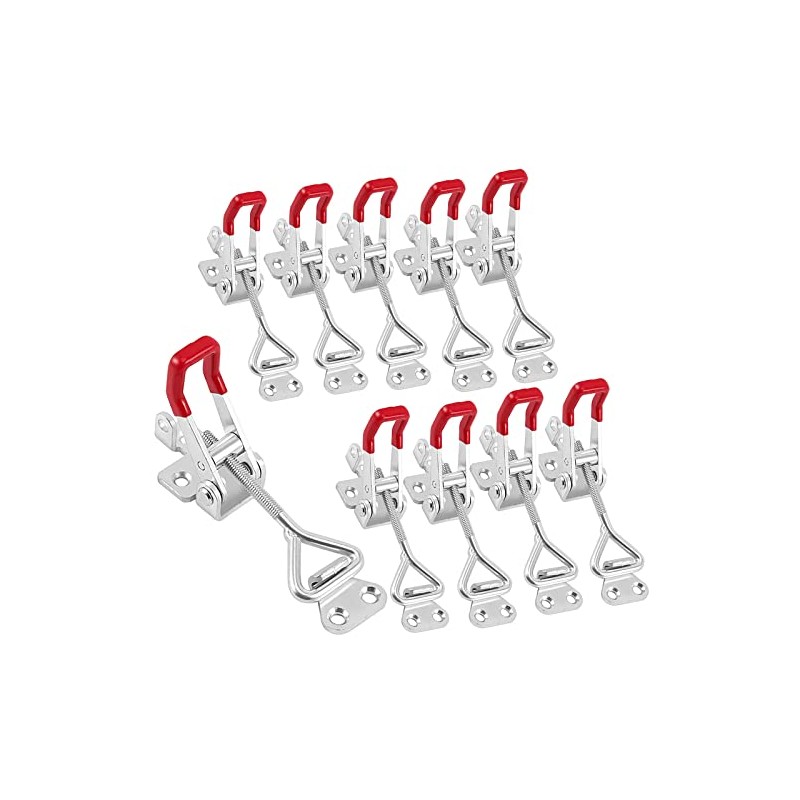 - COMFORTABLE HANDLE - Our toggle latch clamp with anti-slip red rubber coating handle is easy to open and close, provides you with comfortable feel and easier to see in low light and easier to understand the clamp orientation, improve work efficiency.