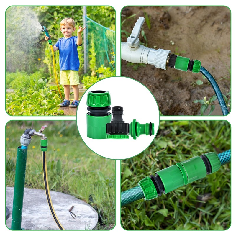 2-in-1 Tap Connectors:The tap connector comes with two parts. the green part is used in conjunction with a 3/4 inch tap, and the black part is used in conjunction with a 1/2 inch tap,Allows two lengths of hose to be joined together with the use of female hose end connectors, can be installed quickly and easily using.