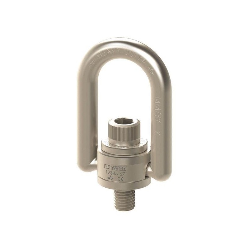 - Price For: Each Pivot: 180 Degrees Mounting Style: Bolt-on Swivel Angle: 360 Degrees Thread Size: 5/8-11 Item: Hoist Ring Installation Torque: 60 ft.-lb. Bail Dia.: 1" Working Load Limit: 4000 lb. Standards: ASME B30.26 Series: ENHDHR Country of Origin (subject to change): United States