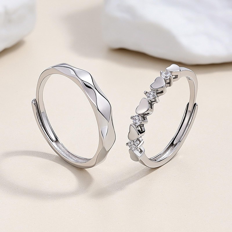 Hoisy Engagement Rings Pair Ring Adjustable 925 Engraving I Love You Partner Rings Nickel-Free Valentine's Day Adjustable, stone, Cubic Zirconia
