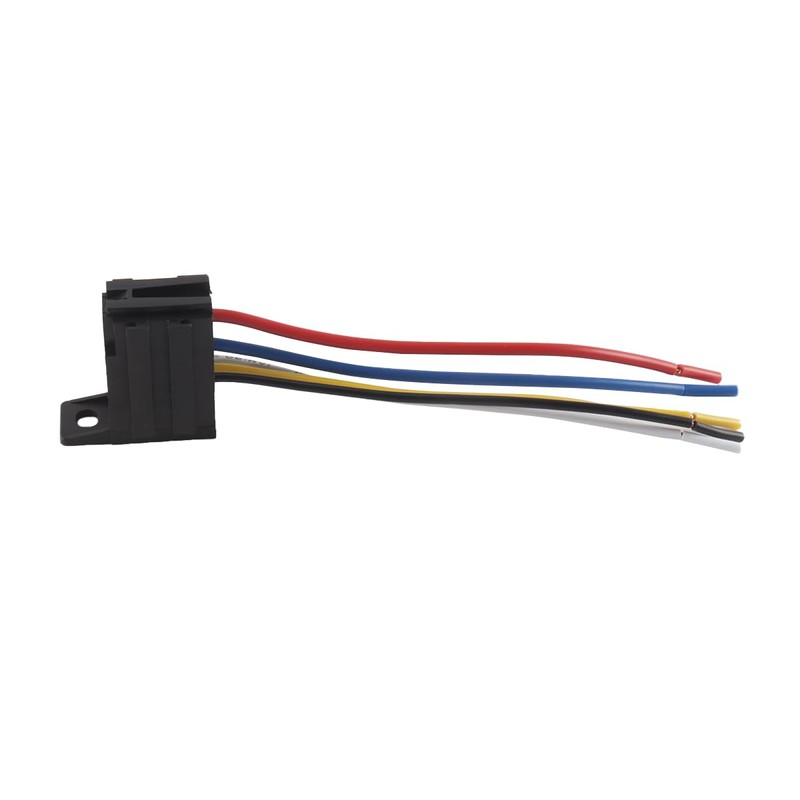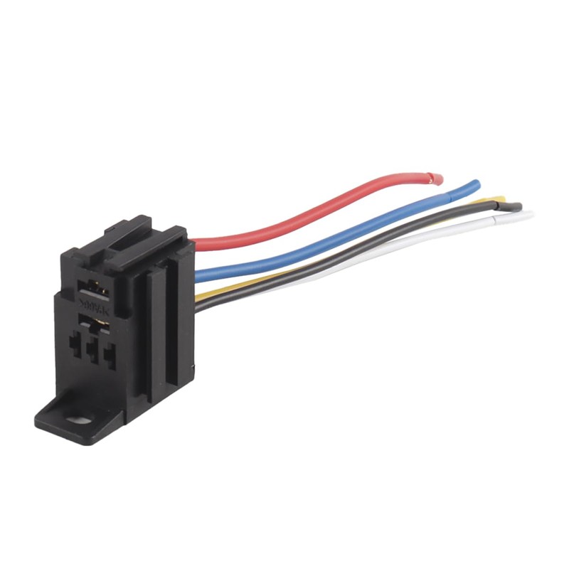 - The 5 terminals relay socket.;Package Content: 10pcs x Relay Socket Harness;Wire Length: 130mm;Type: 5 Terminals 5 Wires;;Pre-wired relay socket for use with 12V DC.