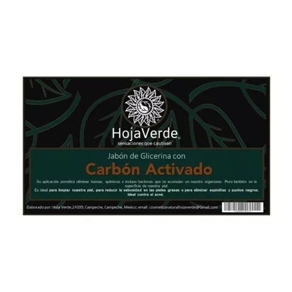 HOJA VERDE Paq De 3 Jabones De Glicerina Vegetal Base Carbon Activado