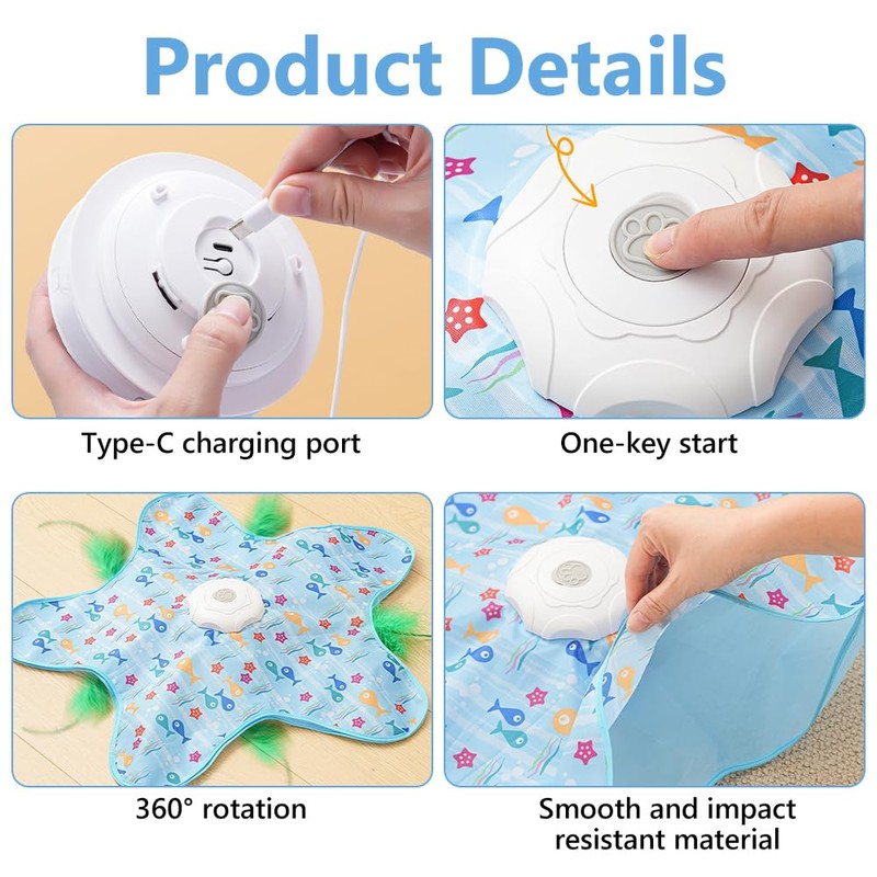 - 【Rechargeable & Long-lasting】With a USB-rechargeable battery (type C), it can be fully charged within 2-3 hours. Once charged, your indoor cats can enjoy self - playtime for days. No need to worry about constantly replacing batteries.