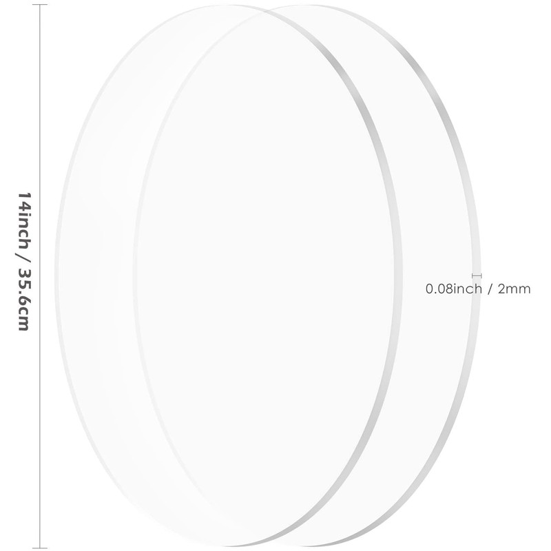 Hojas de acrílico de círculo transparente, 2 unidades de disco acrílico de 14 pulgadas, 2 mm de grosor, disco acrílico transparente de plexiglás redondo para proyectos de bricolaje y manualidades