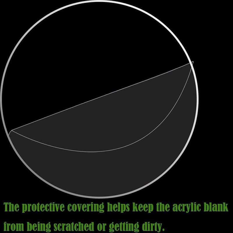 - Película protectora: sin arañazos, sin bordes afilados. Los discos acrílicos tienen una película protectora en ambos lados que debe despegarse cuando esté listo para usar el espacio en blanco. Esta cubierta protectora ayuda a evitar que el blanco acrílico se raye o se ensucie.