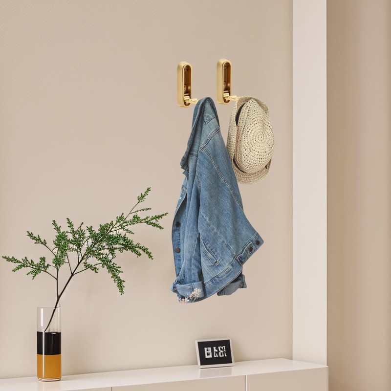 HOJLKLD 4pcs Folding Coat Hook, Heavy Duty Wall Hooks Made of Zinc Alloy, Foldable Gold Wall Hooks for Hanging Coats, Scarves, Hats (Gold)