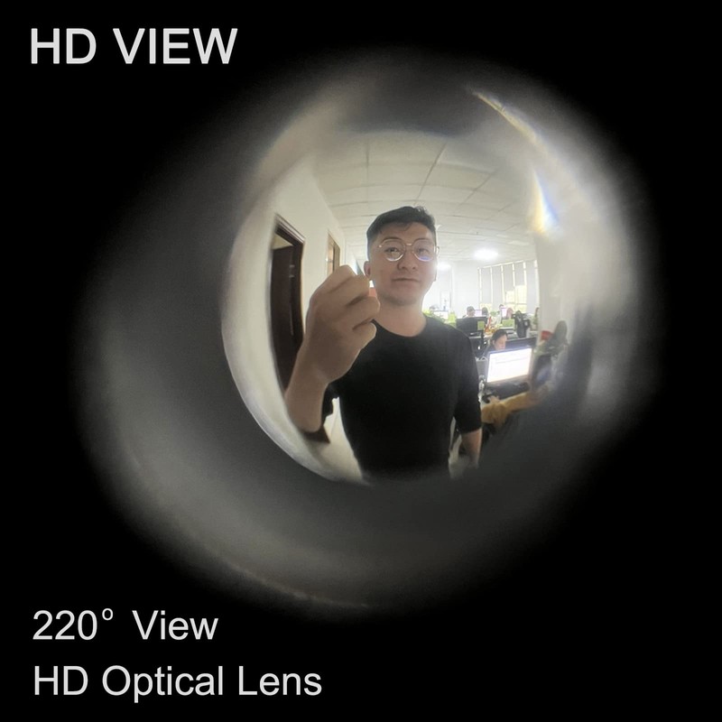 - Super Clear HD Lens--Optical lens with 220-degree visual angel offers a crystal clear view with wide angle coverage. You can easily view the entire surrounding area from the top of the head to the feet of someone standing outside. It offers the highest security for you and your family.