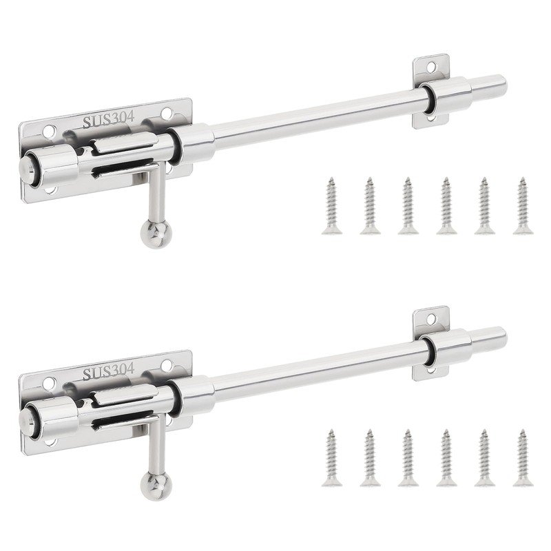 - SUS304 Stainless Steel: The bolt latches are constructed from solid 304 Stainless Steel, rust-proof and corrosion-proof, stronger than normal sliding door lock, ensuring quality and longevity