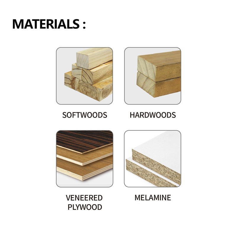 - √ ,Ideal for Cuts fine molding, hardwoods, softwoods, veneered plywood, melamine and more.