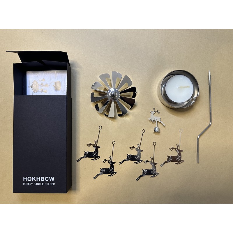- (Auto Rotation) After lighting the candle, the top of the holder will rotate as it waits for the heat from the candle to rise. The dancing flame and rotating blades are cast on the roof and surrounding walls, creating a unique reflection of light and shadow (comes with a candle)