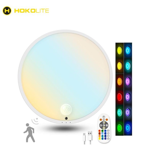 Hokolite 7 Inch Motion Sensor Ceiling Light with Magnetic Base, 12 Dynamic RGB Colors, 120° Wide Coverage, Rechargeable Timer Function, 1.32 Pounds - Specification: 2 Pack