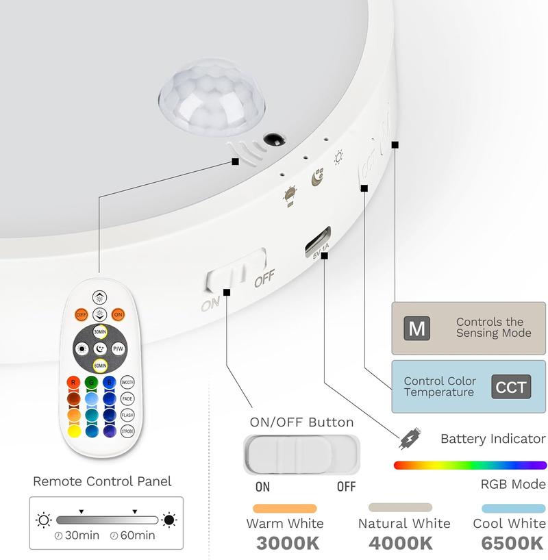 - Rechargeable Motion Sensor Ceiling Light: Transform your living spaces with continuous illumination using our rechargeable ceiling light.