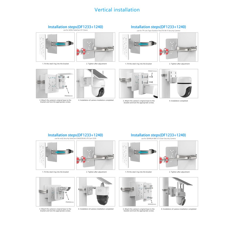 - Flexible Installation: This installation bracket is suitable for circular columns, tree trunks, branches, and pipelines. Both indoor and outdoor installations are very convenient. There is a powerful and secure angle lock that keeps your camera in the same position.