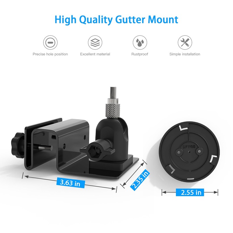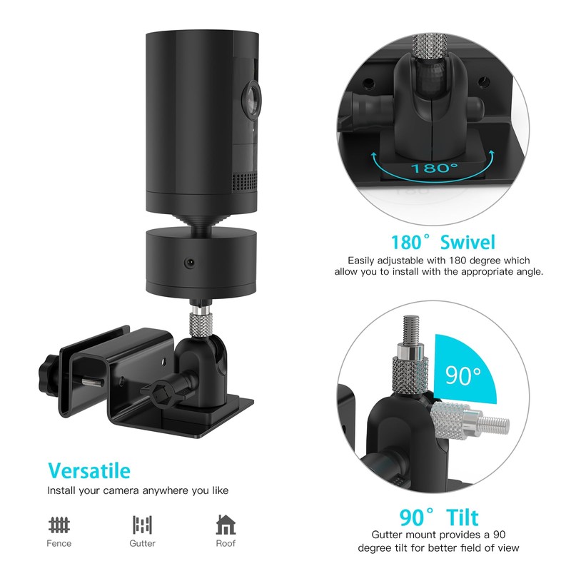 - Exclusive design: the HOLACA gutter mount is specially designed for Rin g indoor/outdoor pan-tilt mount (stick up cam plug-in), compatible with arlo pro 4, arlo pro 3, arlo pro 2, Eufy 2, 2C, 2C Pro, 3, 3C. In addition, the mount is suitable for a variety of indoor and outdoor surveillance cameras with 1/4-20 mm bolts, sports cameras, trail cameras and other cameras.