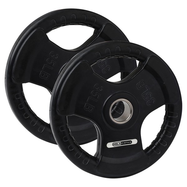 HolaHatha 35-Pound Olympic Rubber Coated Solid Cast Iron Weight Plate with Tri Grip Handle for Full Body Strength Training Workouts (2 Pack)