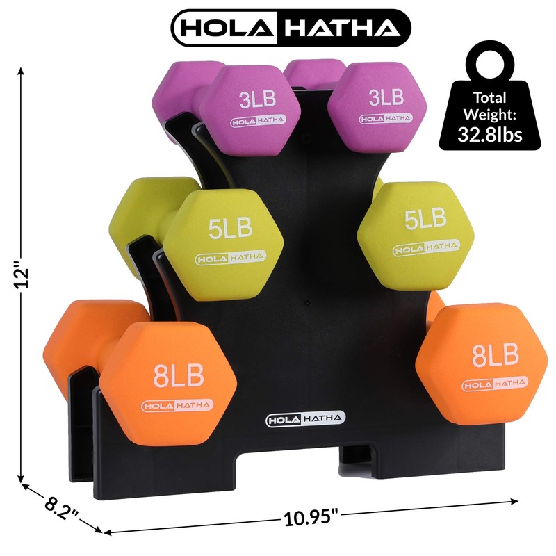 HolaHatha 2, 3, 5, 8, and 10 Pound Neoprene Dumbbell Free Hand Weight Set with Rack, Ideal for Home Exercises to Gain Tone and Definition, Pastel