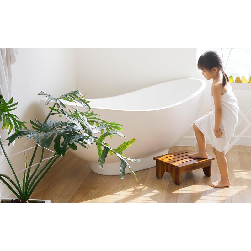 Holana One Step Stool for Adults 6.5" - Wooden Step Stools for High Beds - 550 lbs Safety Stepping Stool Bathroom Aid for Handicap, Elderly, Seniors, Kid, Bathtub, Bed, Kitchen (Acacia Wood)
