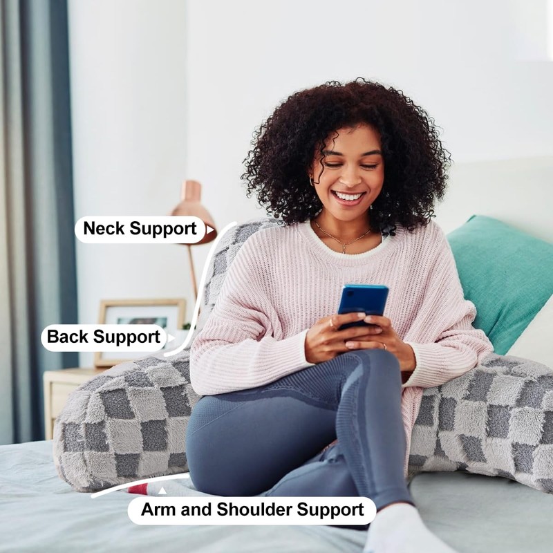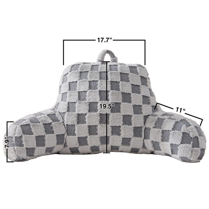 Holawakaka Checkered Reading Pillow with Arms, Adults Backrest Reading & Rest Pillows for Sitting Up in Bed, Bed Rest, Lounging, Working, Arms Back Support Cushion for Men Women Teens, Light Grey