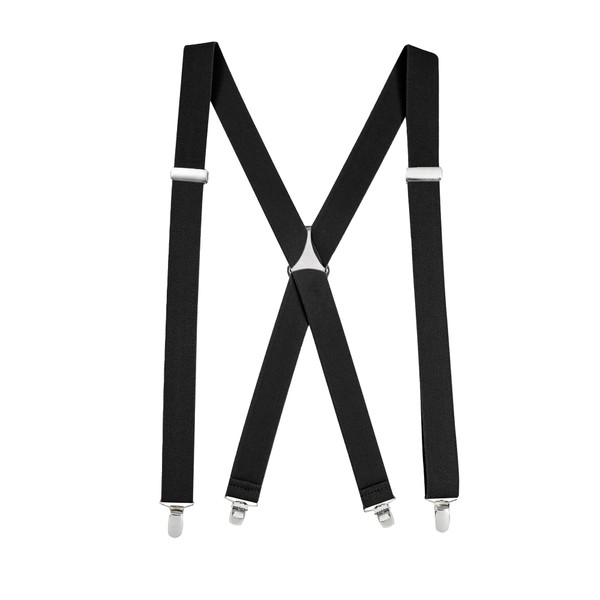 Hold'Em Suspenders for Men X-Back Adjustable Straight Clip - Black (Regular 46" Long)