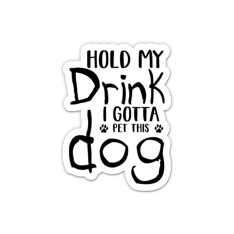 Hold My Drink I Gotta Pet This Dog Sticker - 3" Laptop Sticker - Waterproof Vinyl for Car, Phone, Water Bottle - Funny Dog Lover Decal
