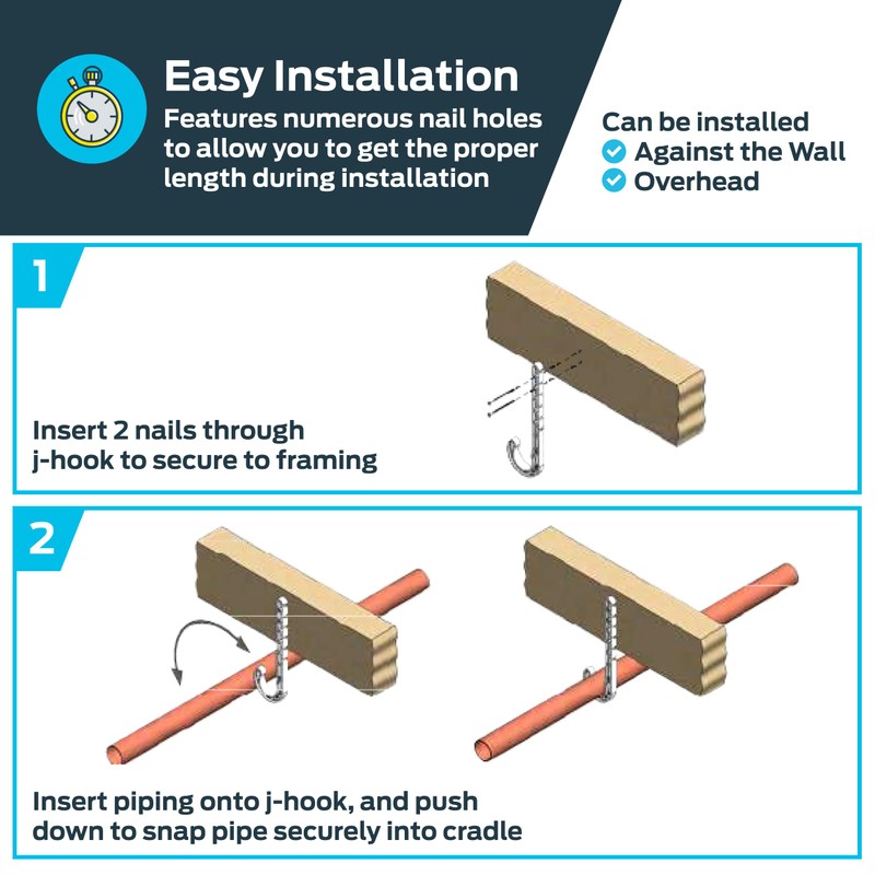 - J HOOK WALL MOUNT: Water pipe hangers are ideal for securing and hanging CTS piping