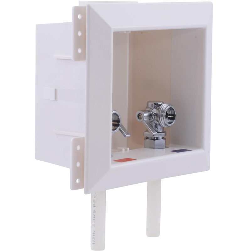 - PRE-ASSEMBLED: This non-fire-rated washing machine outlet box works with a PEX tailpiece that features a 1/2 inch CTS tubing supply inlet, making it adaptable for various water supply systems