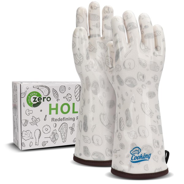 HOLDZERO Heat Resistant Gloves Oven Hot Mitts with Fingers Silicone Oven Glove for Cooking Baking Grilling BBQ Cute Print White Large