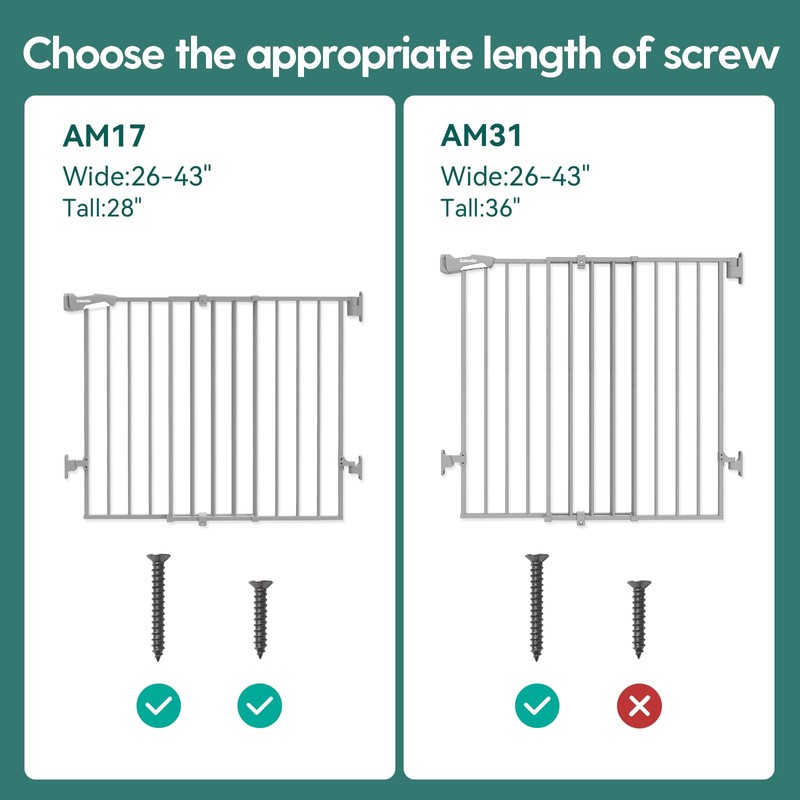 Hole Mounting Kit for Babelio 26-43" Auto Close Baby/Dog Gate for Stairs, Contains Screws, Gray