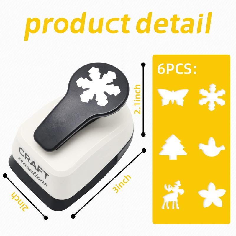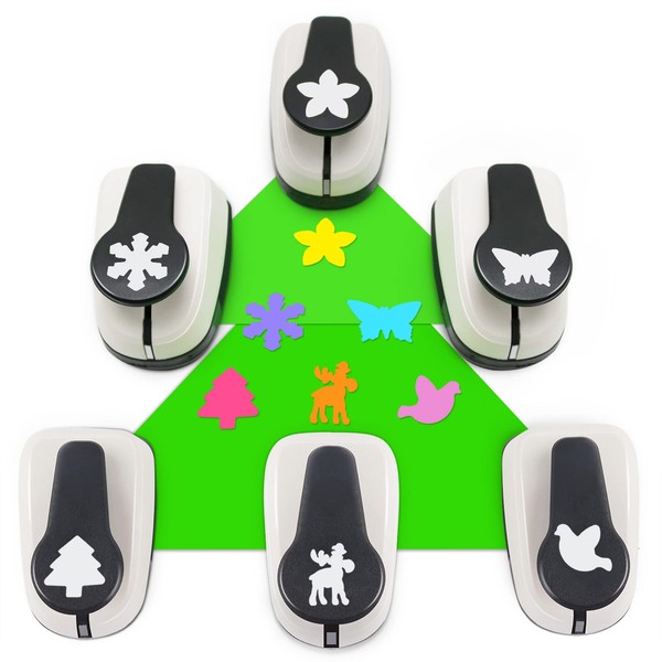 Works & Quality Good:Sinmeey uses reinforced hard springs, the paper punches will be firmer and long-term.The high quality ABS and high-grade zinc alloy materialis made to last.Not only do they work for you, but your kids or grandchildren can use the hole punch set.High quality paper punch shapes and works good. Cuts Well & Easy to Use:Easy to use for scrapbooking, photo albums, paper crafting projects, gift boxes, school, cardstocks, decorations and paper craft.Try our hole puncher for crafts, You can get 6 pattern hole punch shapes at all once. Very clear and easy to cut. Cut Paper Recommendation:The paper punches for crafting is suitable for 70-220 gsm paper, that will get the job done quicker and be easier on the hands.Perfect for regular paper, EVA foam, foil, craft paper, basically thickness less than 3MM.We do not recommend cutting multiple sheets at a time, which makes paper hole punch long-term use for you. Package Included:What shapes are included in this hole puncher set? 1 Inch Butterfly, Fir Tree, Flower,Bire,Deer,Snowflake.Our paper punch set make your own art work with a lot of ideas. Note:If find a slight burr on the edge of paper,It’s easy to sharpen punches. Craft punches can be sharpened by aluminum foil or wax paper to lubricate your punch. Finished it, you will be get a pretty sharp punches for paper crafts!
