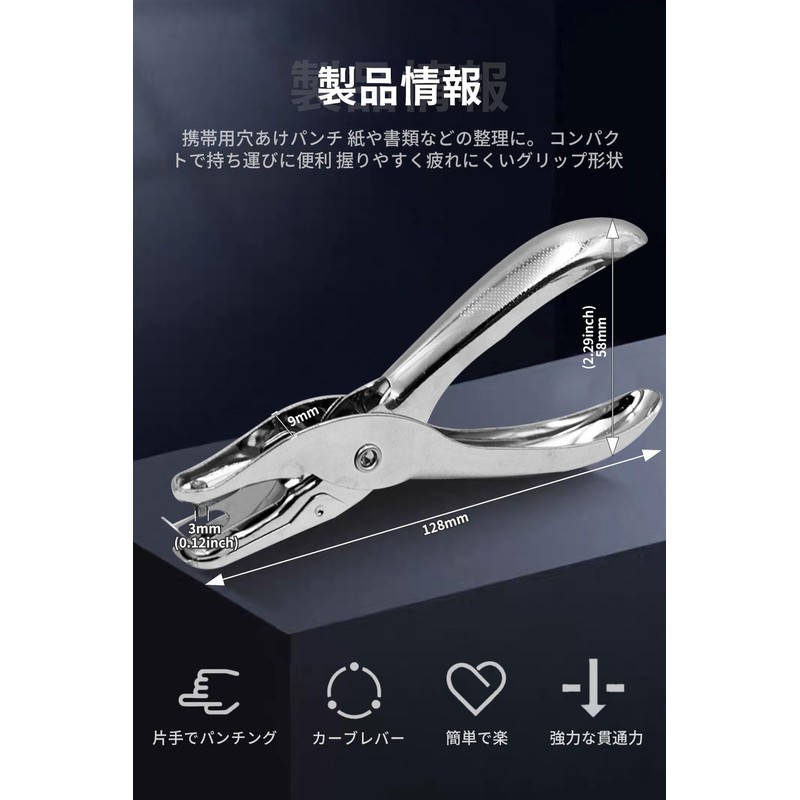 Hole Punch, Stainless Steel, 1 Hole, 0.1 inch (3 mm), 0.2 inch (6 mm), Hand Punch, Made of Metal, Handheld, Lightweight, Single Hole, Labor Saving, Multifunctional, Can Punch Up to 8 Punches,