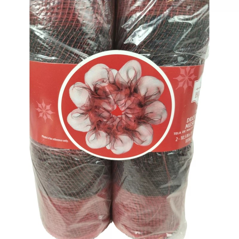 Holiday Time 10 Inch Deco Mesh Red Black Bow Fabric 2 Pack of 18 inch Rolls