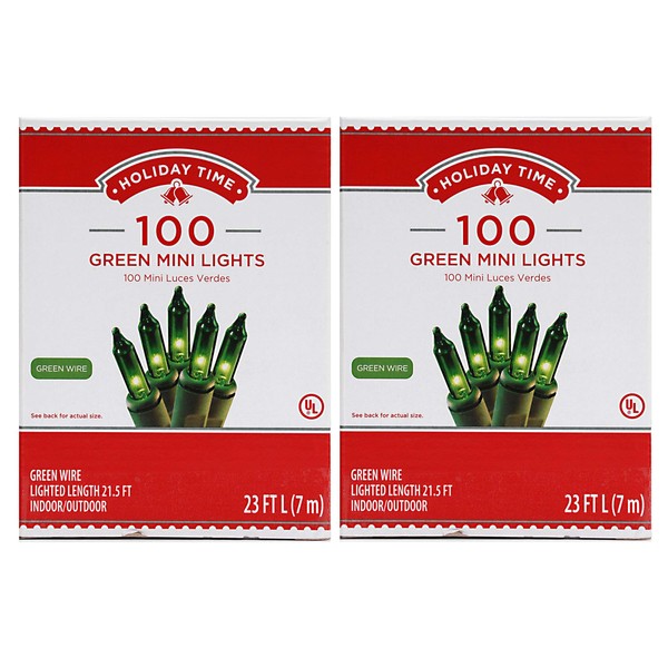 Holiday Time 100 Green Mini Lights - Green Wire (2 Pk)
