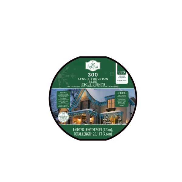 Holiday Time 200-Count Blue LED Icicle Lights with 8 Sync Lighting Functions